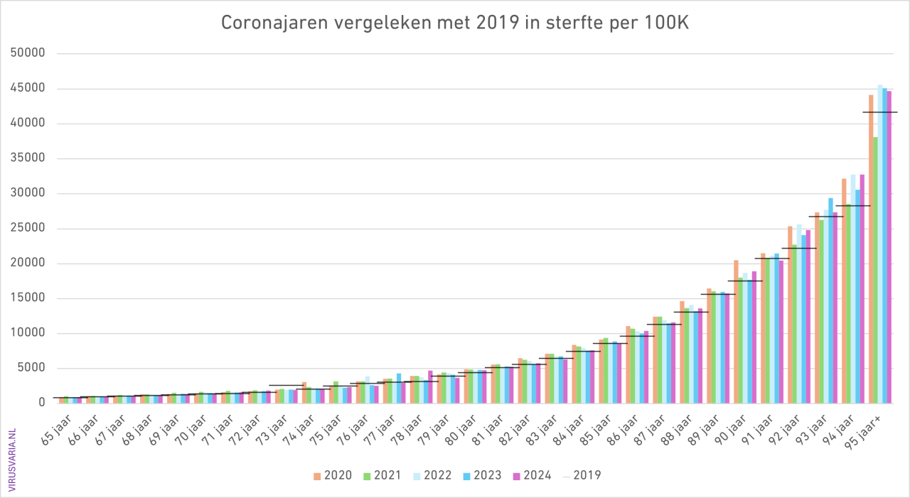 - 4Vergelijking 2024-2019: https://virusvaria.nl/2024-en-2019-vergeleken-in-leeftijdscohorten-m-v/