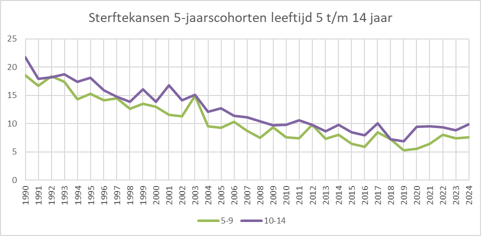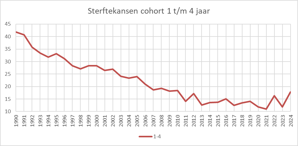 De geruststellende mededeling die ik zou geven als ik bij het CBS zou werken: de absolute aantallen zijn bij kinderen bijzonder klein, daardoor wordt de onzekerheid vele malen groter. Deze cijfers moeten met grote voorzichtigheid worden geïnterpreteerd.