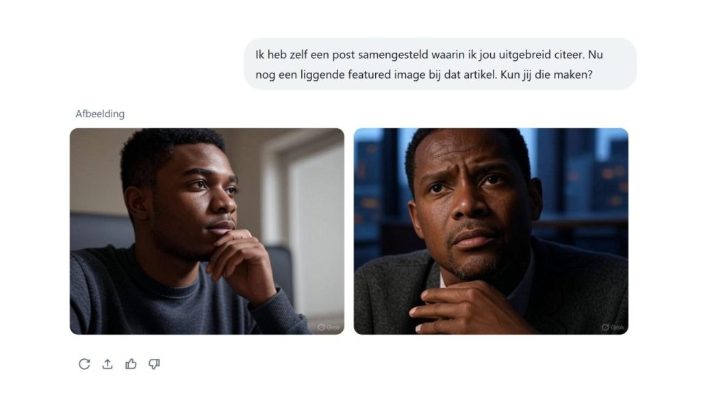 Grappig! Een aantal maanden geleden vroeg ik aan Grok dat ik denk een shadowban te hebben. Nu met ruim 2000 volgers, waren er ooit bijna 3000! Dus dat is al vreemd, maar goed. Over een artikel wat ik deelde kreeg ik 6 likes, wat onmogelijk was. Dus aan Grok gevraagd of hij kon checken “verwijzend naar mijn artikel†hoeveel likes ik daarop had gekregen. Grok schreef 160 likes!! Toen wist ik genoeg, en er is niets aan te doen. Een voorbeeld: Als iemand op X verteld dat zij lekker met de hond heeft gewandeld krijgt degen 300 likes. Kortom hoe onzinniger hoe meer likes. Met Musk dacht ik dat het zou veranderen, maar dat is niet zo.